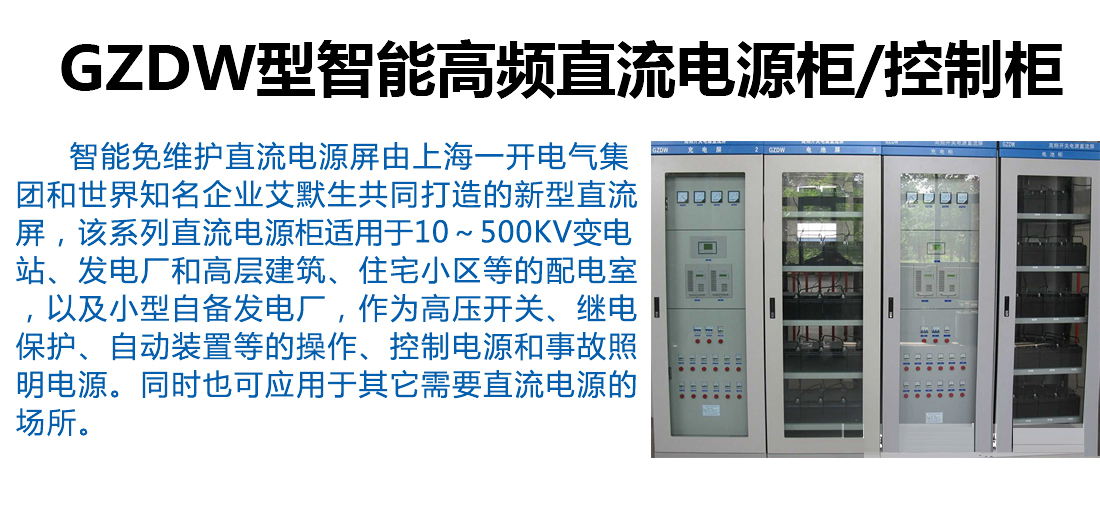 本智能免維護直流電源屏由上海一開電氣集團和世界知名企業艾默生共同打造的新型直流屏,該系列直流電源柜適用于10~500kV變電站、發電廠和高層建筑、住宅小區等的配電室,以及小型自備發電廠,作為高壓開關、繼電保護、自動裝置等的操作、控制電源和事故照明電源。同時也可應用于其它需要直流電源的場所。